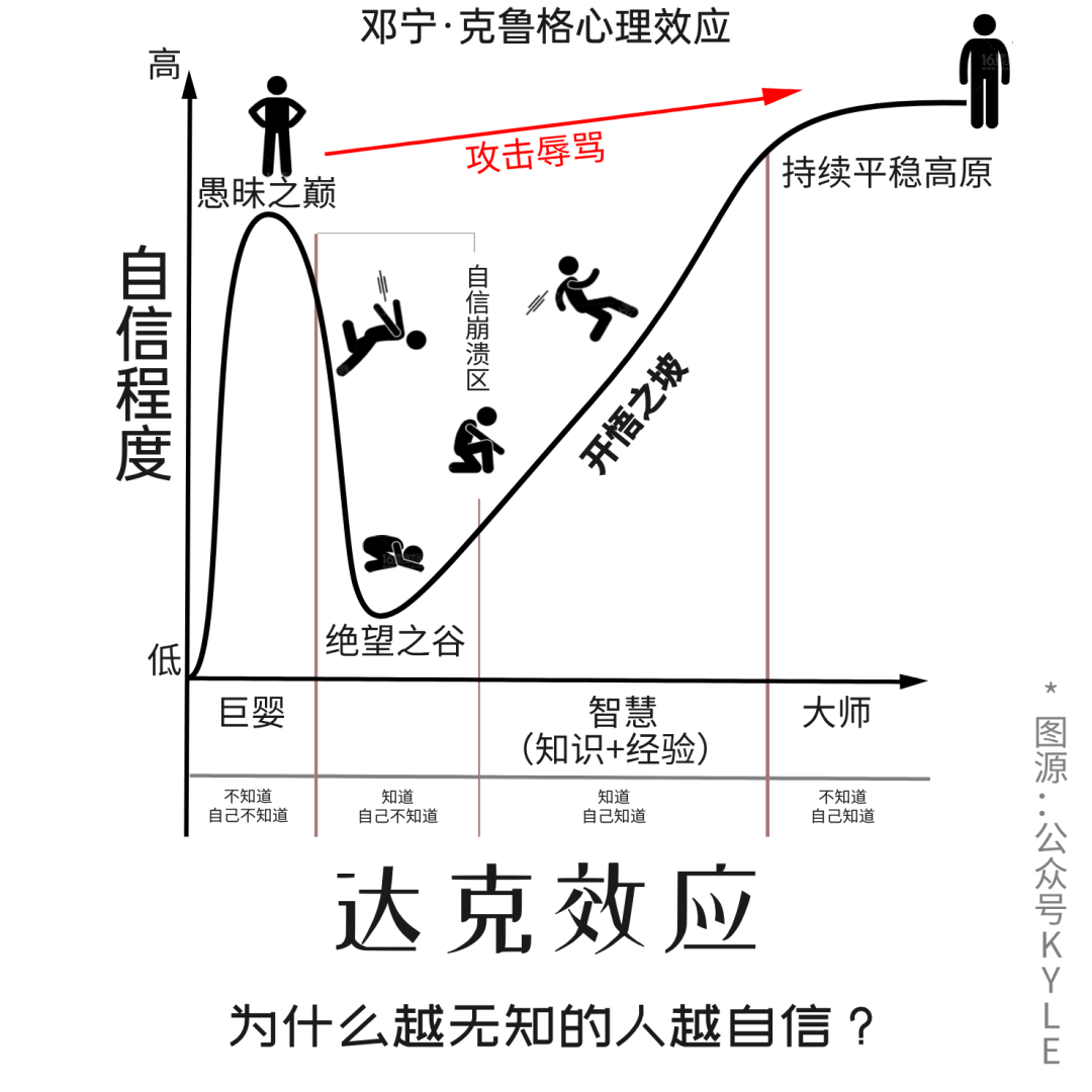 心理学上有个“达克效应”,又叫邓宁﹒克鲁格效应。