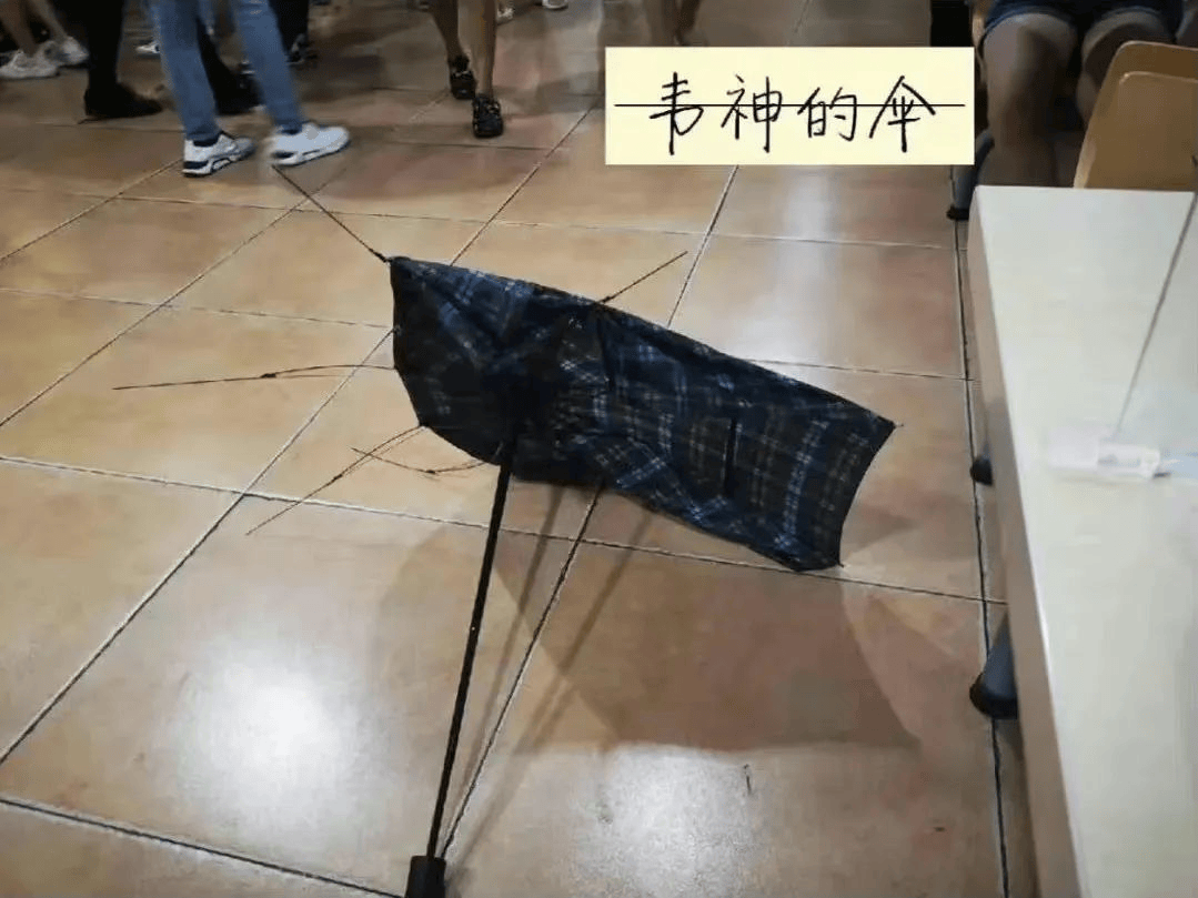 身穿廉价的黑色运动套装,手边是一个洗到变形的旧双肩包,身旁的地上还躺着一把用到“原形毕露”的破旧格子伞。