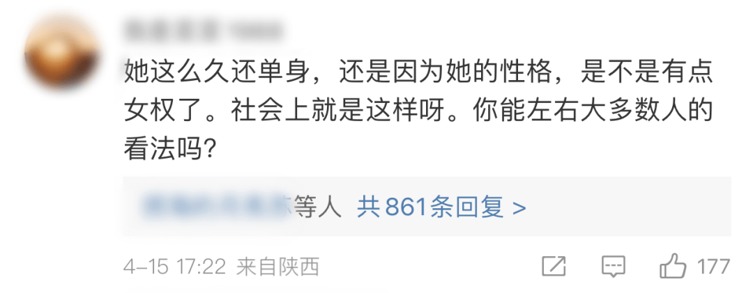 “她这么久还单身,是不是因为她性格太强势了啊?”