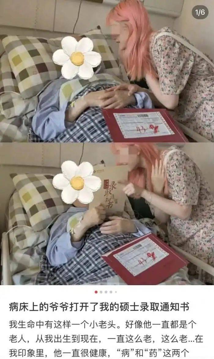 仅仅在网上分享了一张自己带着录取通知书去医院看望爷爷的照片。