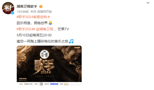 原标题:时隔四年重新回归!《歌手》官宣定档5月10日开播
