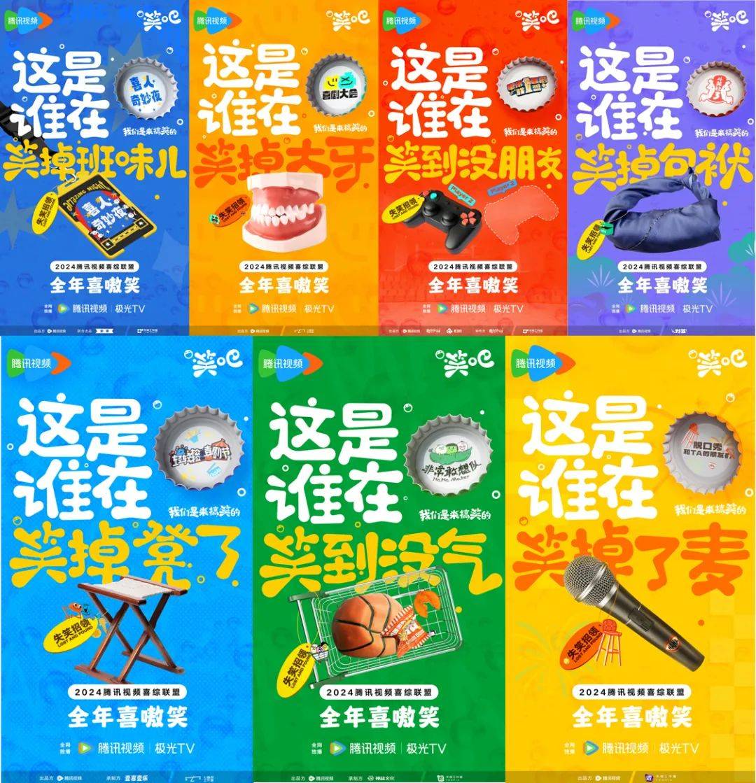 由此可见,2024的喜综生产正在对行业提出新要求。犀牛君注意到,最近腾讯视频就率先洞察到这点,在行业里首度推出喜剧综艺排播带「笑吧」,重新整合资源与米未等顶尖制作公司合制新喜综,全年陪乐的「笑吧」片单包括有《轻轻松松喜剧节》《喜人奇妙夜》《喜剧大会》《非常敢想队》《脱口秀和TA的朋友们》《斗笑社》《单排喜剧联盟》等。