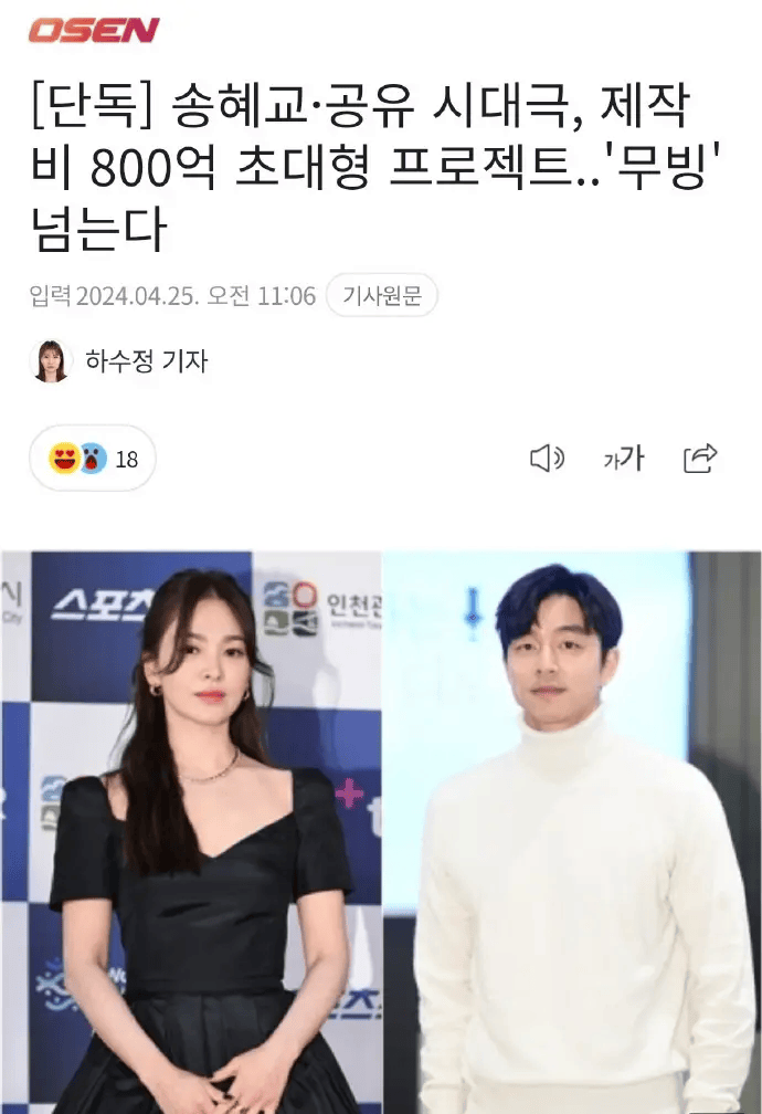 原标题:曝孔刘宋慧乔新剧制作费高达800亿韩元 导演曾执导《咖啡王子一号店》