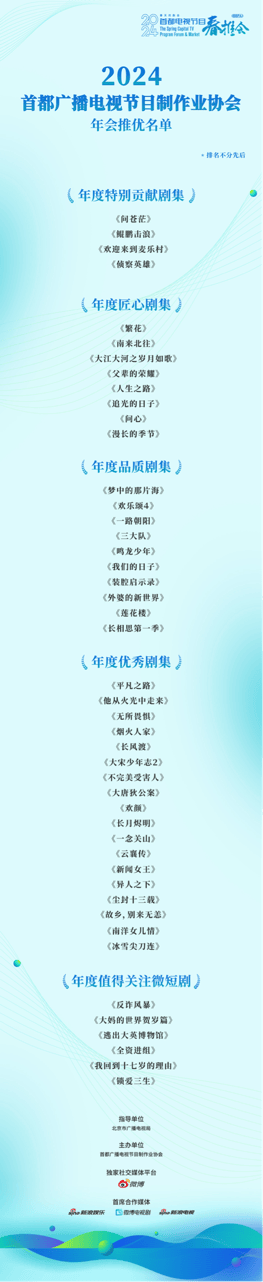 3月26日,首都广播电视节目制作业协会年会隆重在京举行。今年的年会聚焦2023年3月1日-2024年2月29日在电视台和视频网站首播的剧集,围绕重大主题、匠人精神、高质量发展、创作无愧于时代的优秀作品,几个关键词,划分活动单元,本次推优活动还新增了微短剧单元。通过数据筛选、会员单位以及平台投票、专家评审三轮,选出大家选出大家心目中的好作品,交流互鉴,相互学习。