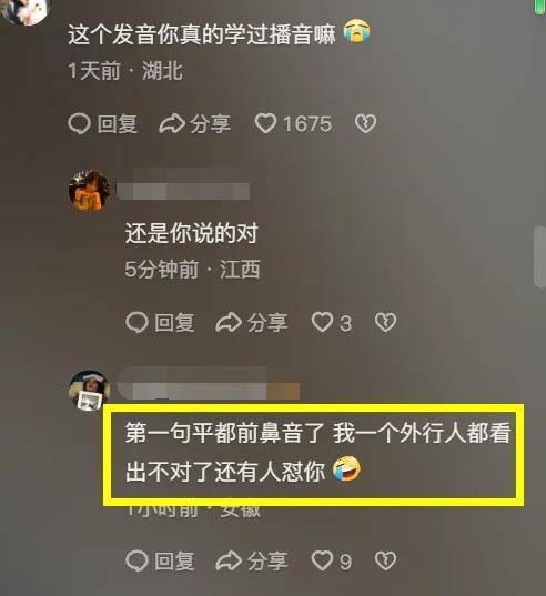 网友还揭发她发音很差,第一句平都前鼻音了,一个外行人都出不对了,难怪还有人怼你!