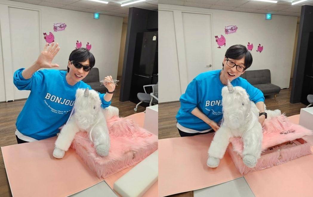 另一张照片中,刘在石戴着Jennie送的墨镜,与独角兽玩偶亲密合影,营造出温馨的感觉。刘在石展示了与人偶的化学反应,并做出了幽默的面部表情,特别是在戴着墨镜的照片中,刘在石露出了濒临灭绝的小脸,引起了韩国网友们的关注。
