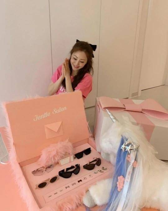 在公开的照片中,吴娜拉在粉色礼品盒旁边抱着玩偶,笑容灿烂。礼盒内,各种形状的太阳镜和配饰整齐地陈列着,引人注目。通过综艺节目《404公寓》结识的吴娜拉和Jennie之间的友谊非常感人。