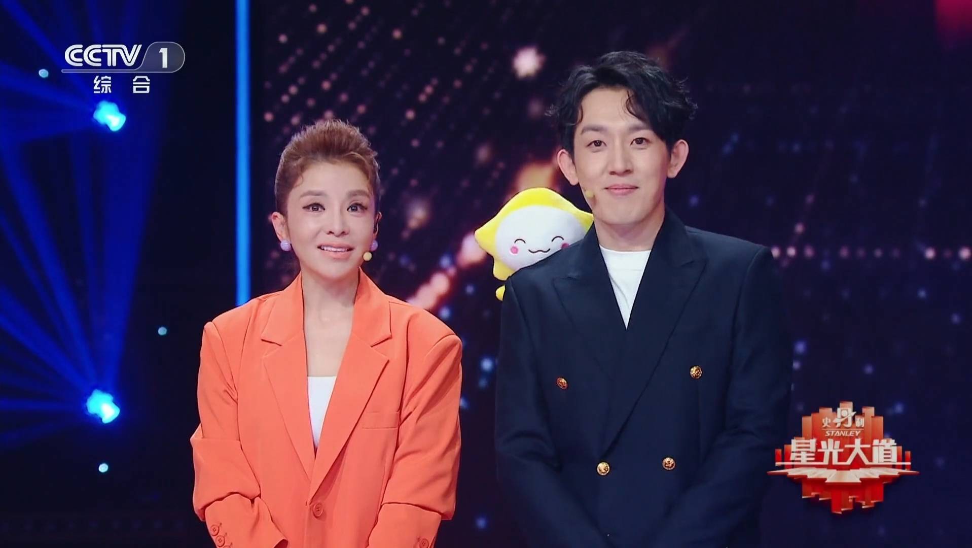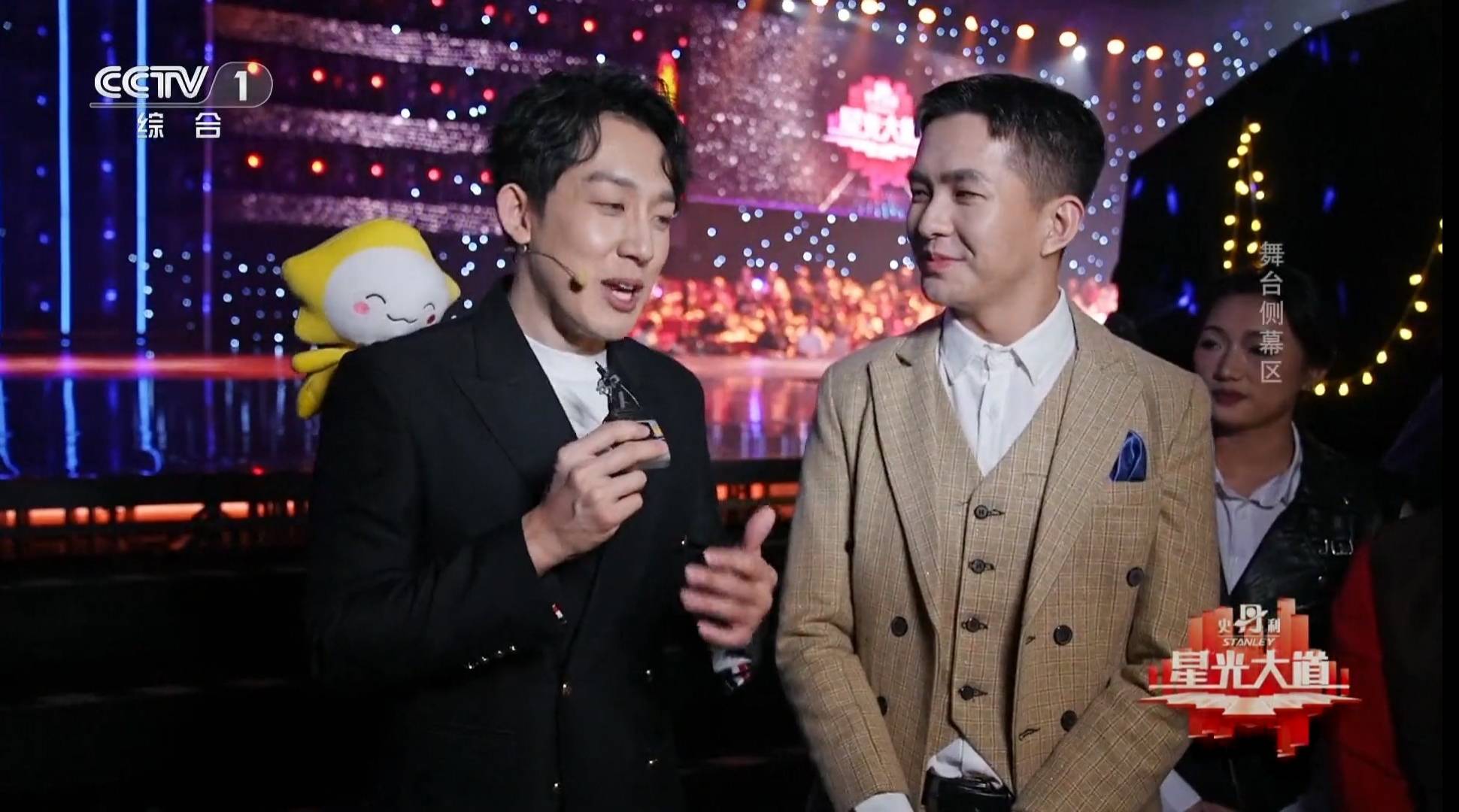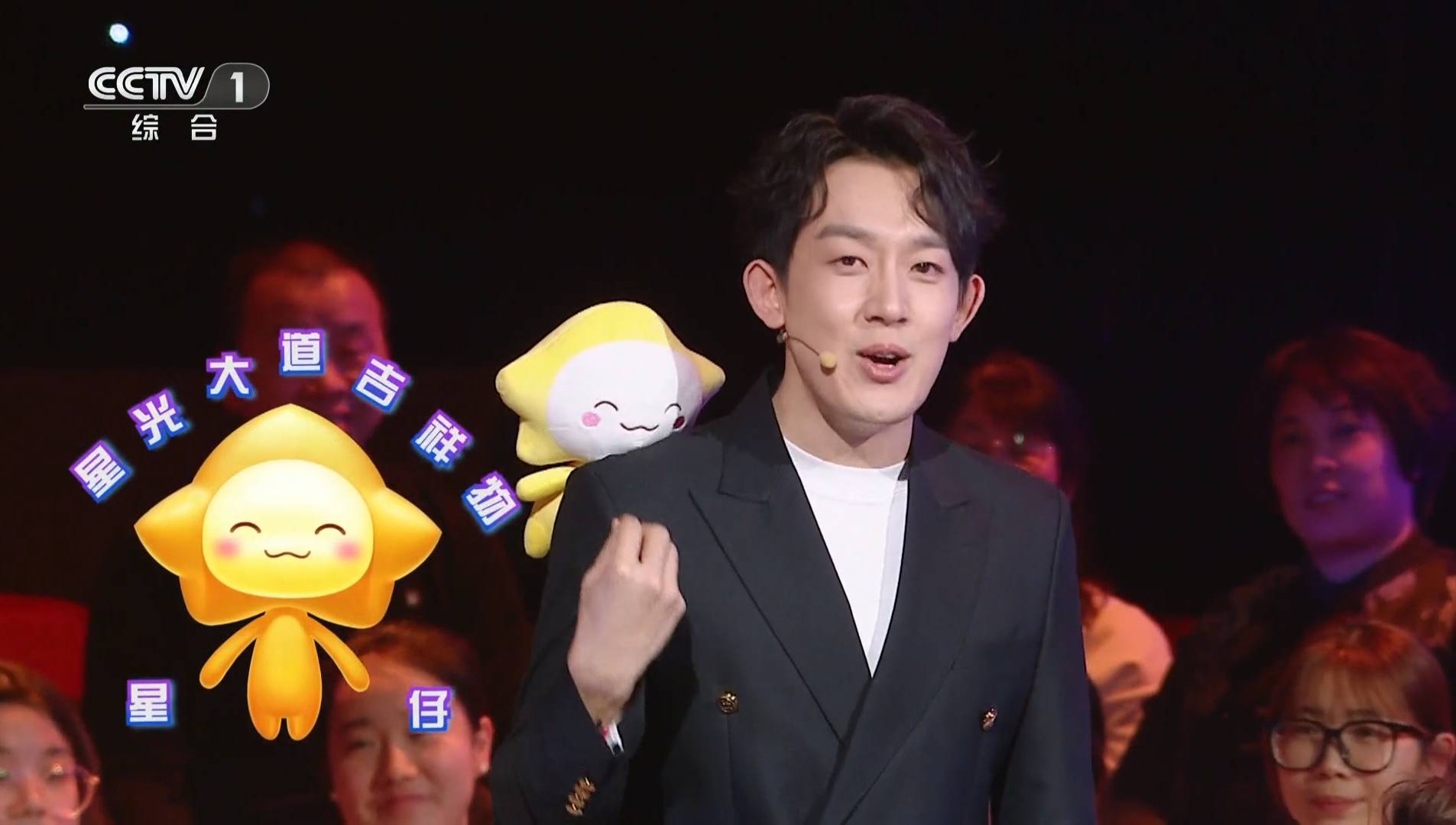 ①、《星光大道》从2004年开播至今,21年来首次出现了吉祥物,是一只五角星形状、带笑脸的玩偶,名叫星仔。而且出场方式很特别,用针缝在助理主持高浩森的右后背靠肩膀的位置,前面看刚好露出来笑脸。玩偶是可爱,不过大只了点,在高浩森背上有点突兀。