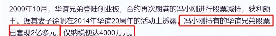 不过虽然冯小刚的演艺事业很难翻身,但他多年积累的资产早已经足够他安享晚年了,早年冯小刚光是套现华谊的股权就赚了2亿多。