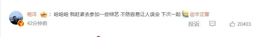 原标题:杨洋发文回应辛芷蕾口误:我赶紧去参加一些综艺