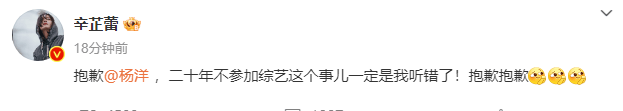 原标题:辛芷蕾和杨洋说抱歉:二十年不参加综艺这事是我听错了