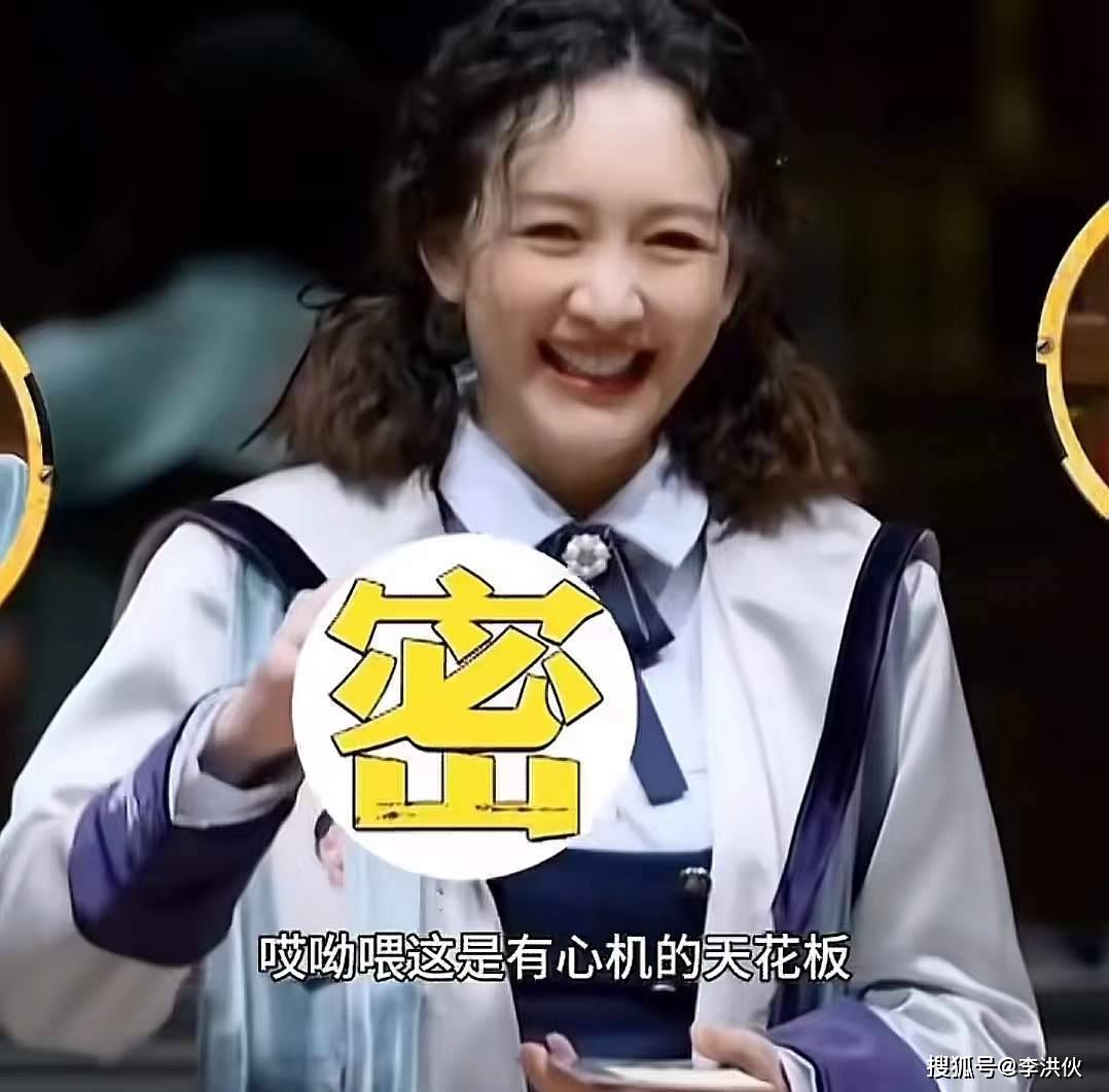 能看得出来,这是在录制《明星大侦探》的片场,她的身边还坐着何炅和张若昀。