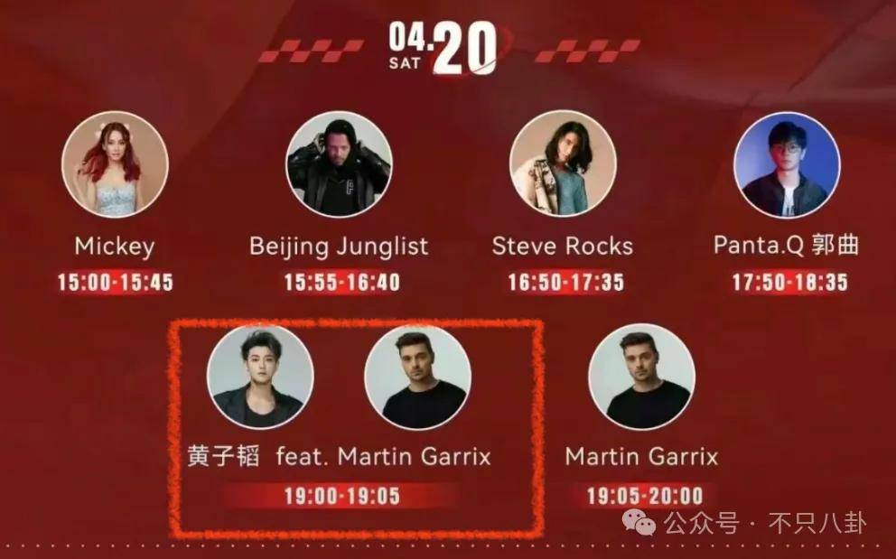 根据官方公示的演出时间表来看,黄子韬和小马丁在当晚有一场5分钟的合作舞台,之后从19:05-20:00的时间都是小马丁的solo表演。