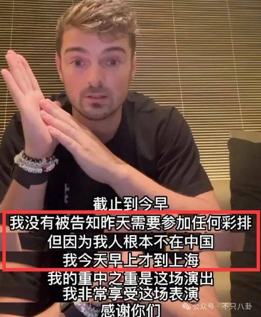 黄子韬说提前一天彩排小马丁都不来,但小马丁说,提前一天他人根本不在中国,他是演出当天早上才到上海的,并且事先没有被告知要参加彩排。