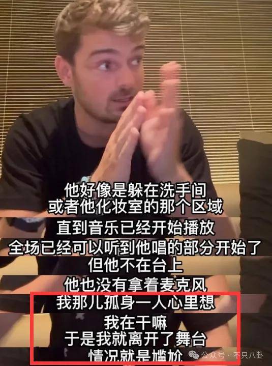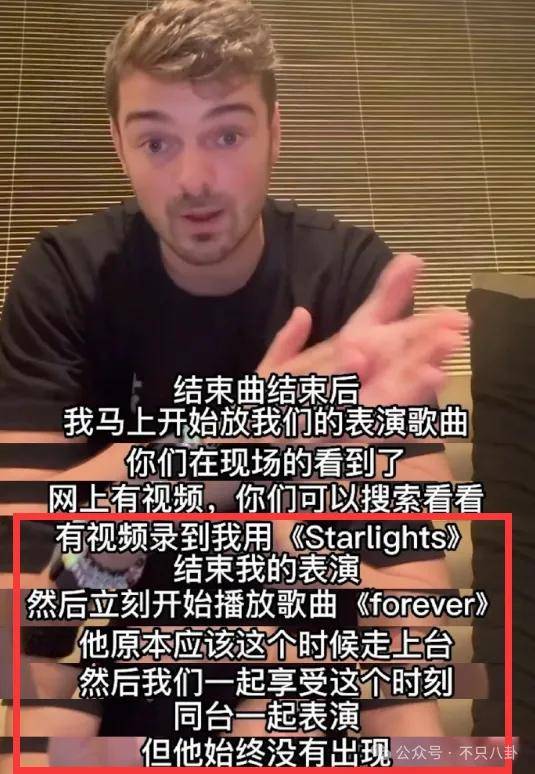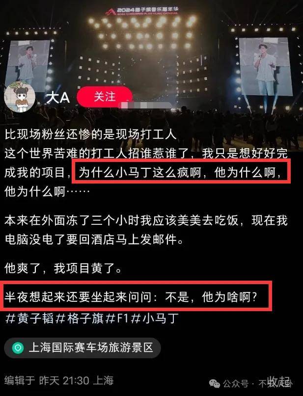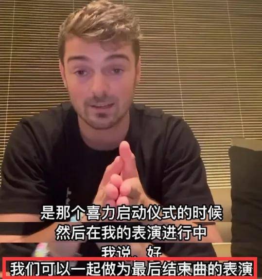 但黄子韬仍然很生气,他指着身后的场地说:“你仔细听,这是我的声音,我人不在台上,他(指小马丁)把我的歌放了一遍,我演个毛啊!”