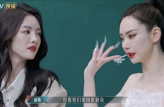 从两位浪姐的点评来看,倒不是说羡慕郭碧婷长的有多美,美是主观的人尽皆知,但说她美的轻松不复杂,话里话外更多的是羡慕、自愧不如了吧。