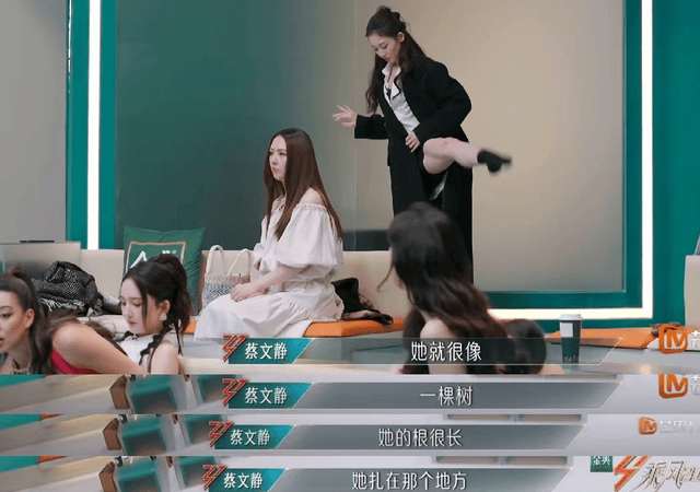 节目里其他人在笑在闹时,只有她静静地坐在那里,游离在外。蔡文静形容她是一颗树,根很长,扎根在那里。