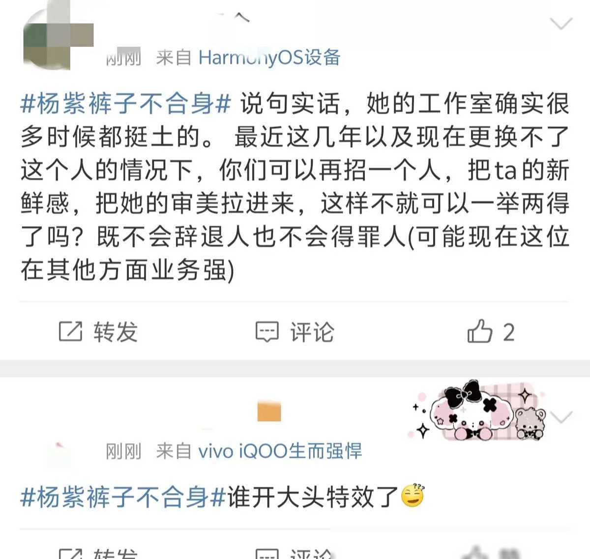 对于这样的造型,网友们纷纷表达了不满和担忧,认为杨紫的形象被较为粗糙地处理,甚至质疑了她的造型师和工作室的专业素养。