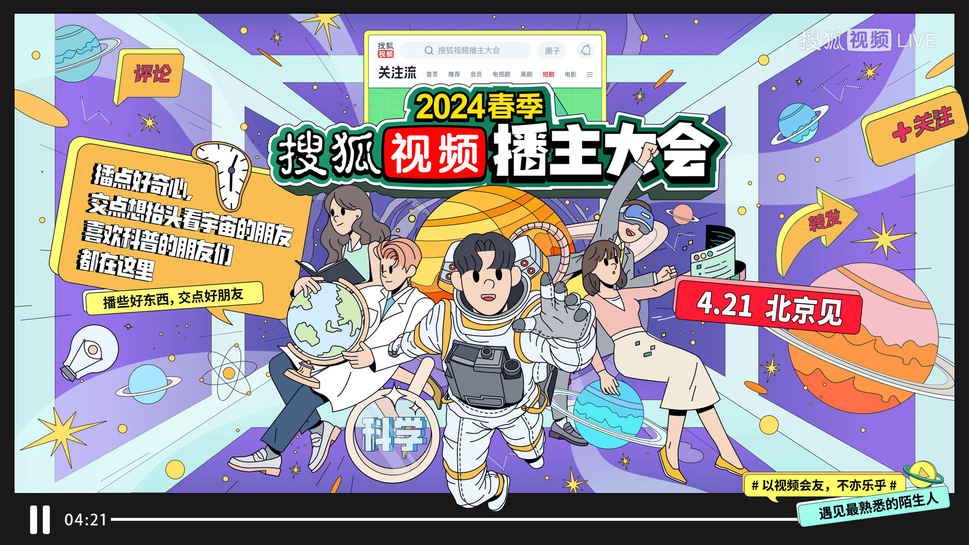 更多内容,可提前关注搜狐视频APP关注流,搜索“搜狐视频播主大会”,锁定4月21日全程直播,全场热点,不容错过!