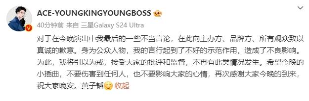 原标题:黄子韬就音乐节不当言论道歉!曾曝“小马丁”拒绝与他同台演出