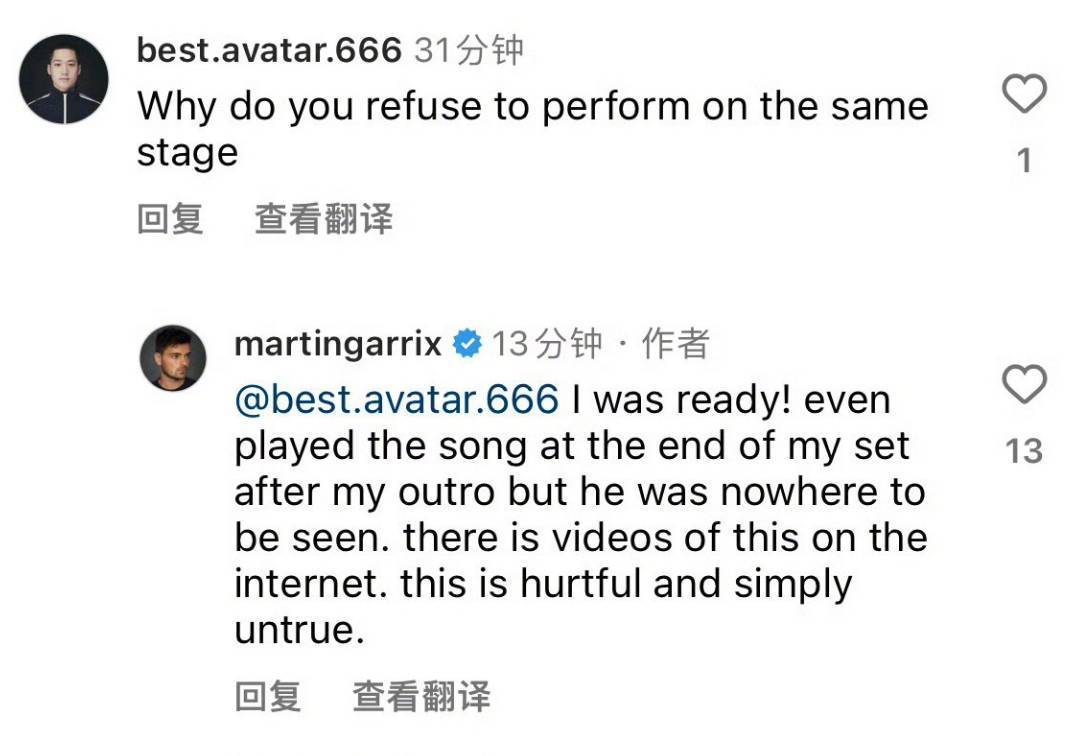 继黄子韬后,“小马丁”Martin Garrix也回应了“拒绝同台”事件,他表示: “我准备好了的,甚至在演出结束后还放了这首歌(应该是两人同台表演的歌),但是他(应该是黄子韬)却不见了。网上现在流传的视频,很伤人心,而且完全不真实。”
