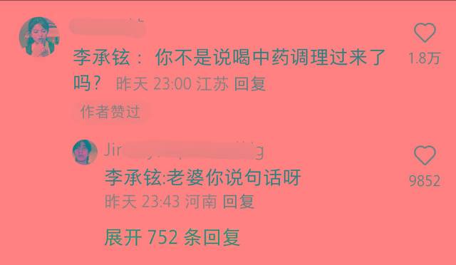 评论区好多网友都提到李承铉,为他喊话戚薇 :你不是说喝中药调理过来了吗?