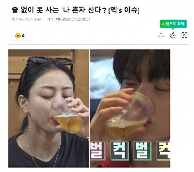 4月20日,有韩国媒体报道,韩国知名综艺节目,《我独自生活》因过度宣扬“饮酒”,受到了韩国网友们的批评,在《我独自生活》中经常出现“喝酒”的场景。报道称,最近,综艺节目《我独自生活》演员们的日常生活中出现酒精现象,引起了韩国网友们的关注。