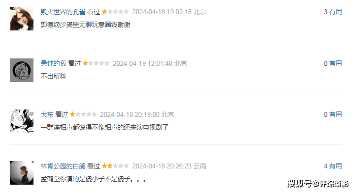 长评区只有一条评论,名字叫:郭德纲就不能尊重一下影视行业吗?