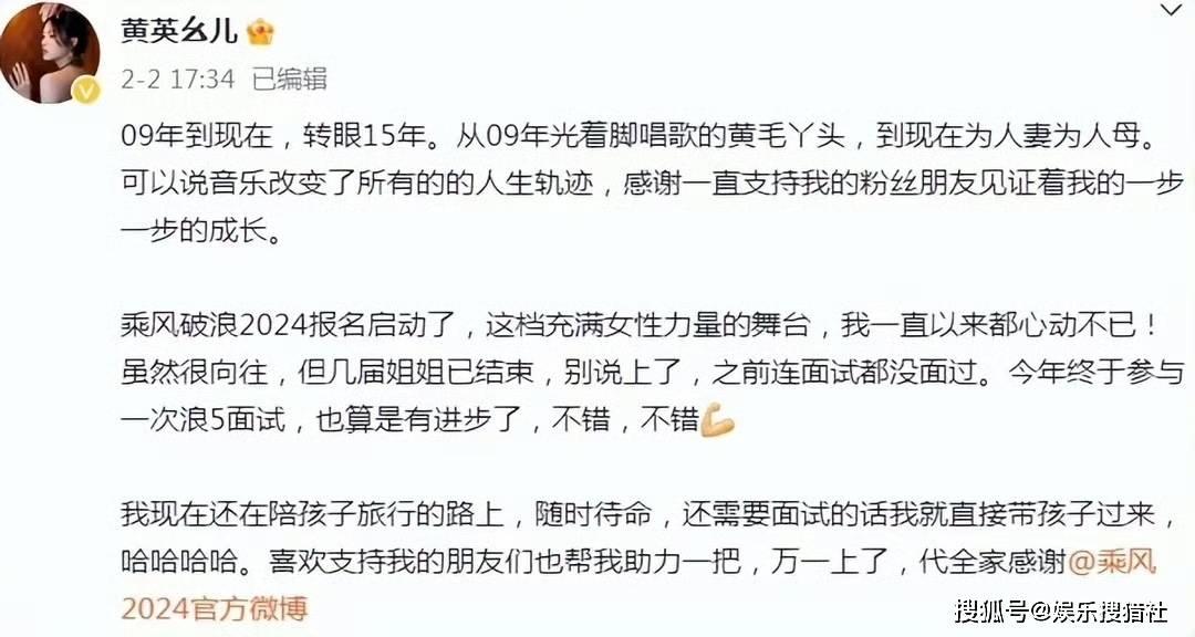 但后面黄英在演艺事业并没有取得太大的成功,这也让不少粉丝为之感到可惜。尽管在之后的一段时间里,黄英也曾多次尝试通过参加“浪姐”来实现自己的音乐梦想,但是每一次都以落榜告终这也让黄英更加迷茫和无奈,最终她透露将选择离开音乐圈,转而从事直播卖货的工作。