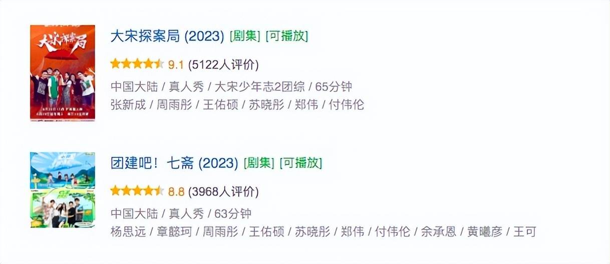 从数据层面来看,这两年市场产出的售后团综也不乏热度、口碑上佳的。比如《宁安如梦》团综在爱奇艺站内热度突破8130,《团建吧!七斋》和《大宋探案局》豆瓣评分分别为8.8和9.1分,远超两季电视剧本身。但坦白来讲,饶是各大平台倾力布局,剧集团综仍未产生真正的“出圈”作品。