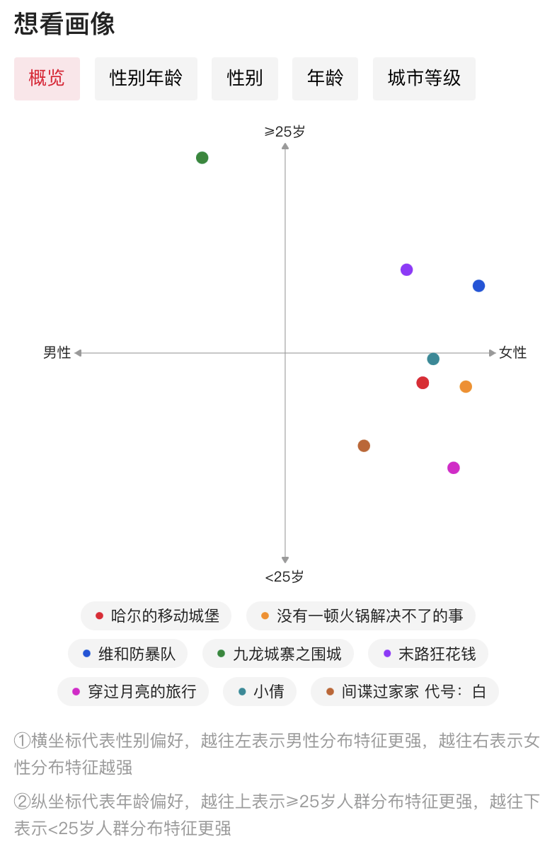 受此影响,今年五一档有两部日漫定档。根据猫眼专业版数据,在《哈尔的移动城堡》的想看用户中,有接近29%的用户观看过《你想活出怎样的人生》,而在《间谍过家家 代号:白》的想看用户中,也有接近27%的用户有过《你想活出怎样的人生》的购票记录。