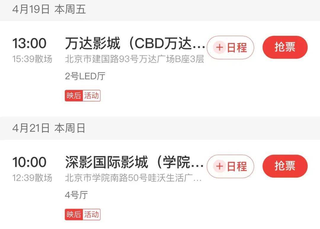 4月19日周五 13:00到15:39 万达影城CBD店 2号LED厅