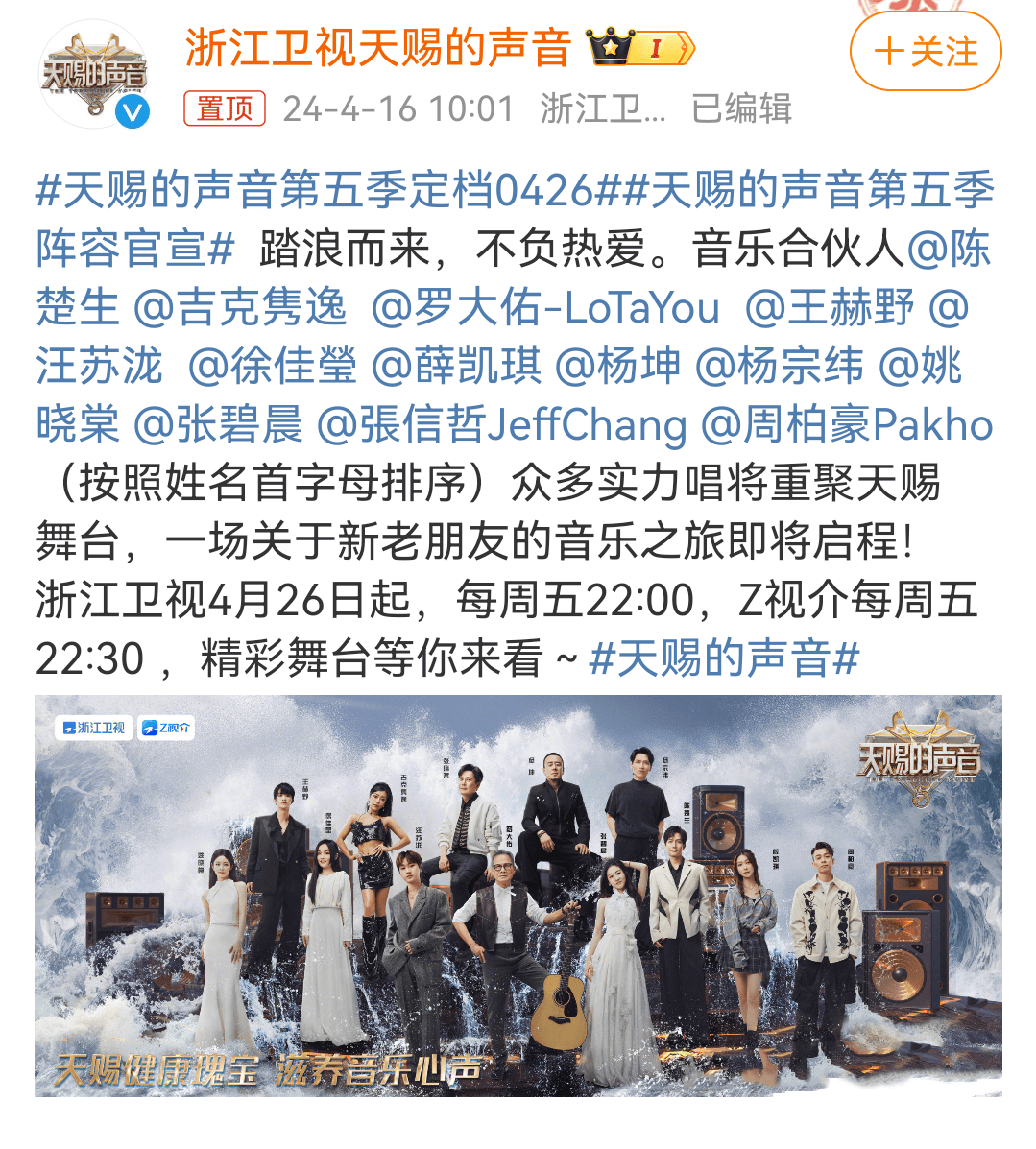 不过《天赐的声音》还是要比《歌手》早上一步,率先公布了自己这一季的嘉宾阵容,看上去对自己这一季是信心满满。自从《中国好声音》停播之后,蓝台也有点将所有资源堆给《天赐的声音》的感觉,嘉宾阵容宛若是一场晚会一般。