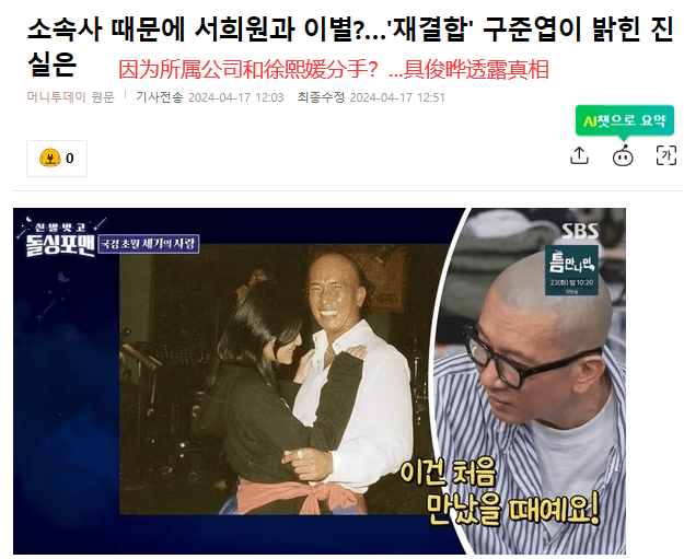 到了4月17日,节目组又放出了更多片段,具俊晔主要围绕坊间传闻回应。