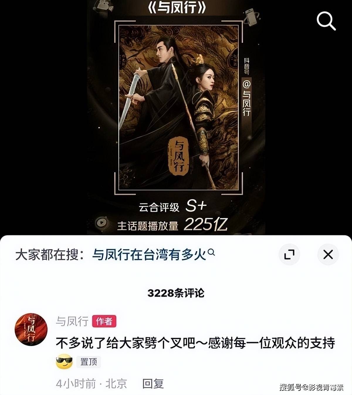 近日,《与凤行》在某短视频平台的官方账号,发布的一条动态引发争议。官方账号说:“不多说了,给大家劈个叉吧,感谢每一位观众的支持。”还配上了一个“得意”的表情包,疑似在玩梗“赵丽颖劈叉”。