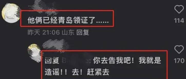 按照网友的爆料,翟天临就是山东青岛人,所以他带着辛芷蕾回青岛领证结婚了,这件事很多人都知道。即便是在有人质疑其造谣的情况下,该爆料网友也是十分坚定,并且声称可以告自己。其坚定的态度,加上该网友的IP显示在青岛,使得其爆料可信度增加,很多网友都已信以为真。