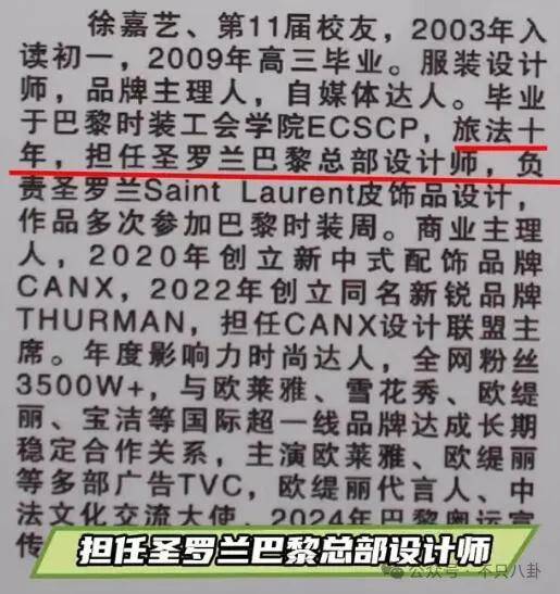 她自称是YSL法国总部设计师,因此登上了广州市实验外语学校的优秀校友榜。