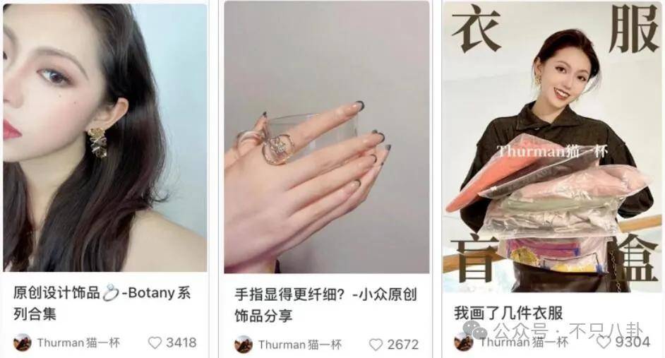 她还有自己的品牌店铺,偶尔会分享一些饰品和服饰穿搭内容,为自己的店铺引流。