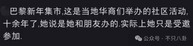 还有网友称猫一杯曾声称举办了巴黎新春市集,实际上她只是参加而已。