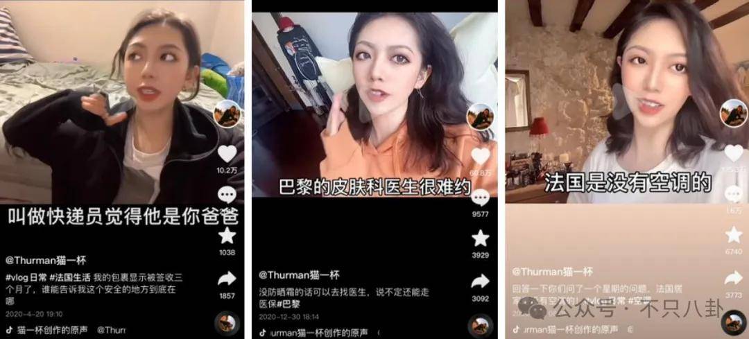 猫一杯本名徐嘉艺,几年前在巴黎留学学习服装设计,2020年她发布在法国的日常视频通过讲搞笑段子走红,2022年回国发展。