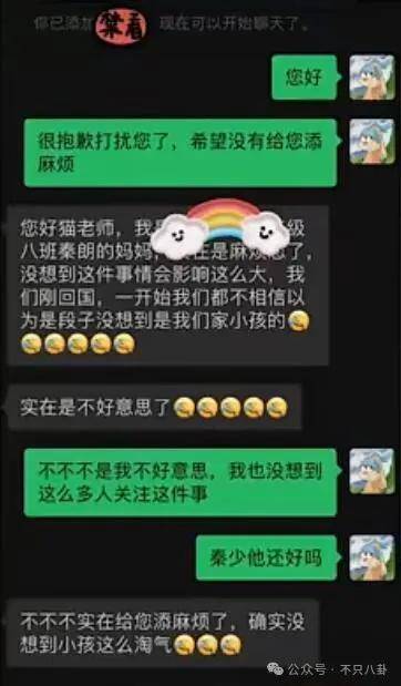 很快,江苏海安西场小学的老师就做出了回应,说一年级只有四个班级,并没有所谓“一年级八班”,更何况学校也并没有叫秦朗的学生。