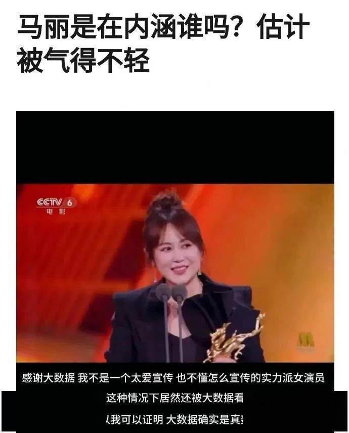 马丽在中国电影大数据荣誉之夜,凭借电影《第二十条》一举拿下年度女演员的奖项,然后她的领奖发言被解读了,围观瓜众都猜测她是意有所指,加上她在领奖台上感谢了导演张艺谋、雷佳音、高叶,连跑龙套的刘耀文都感谢了,却唯独少了特别出演的赵丽颖,内涵之人的名字,确实呼之欲出。