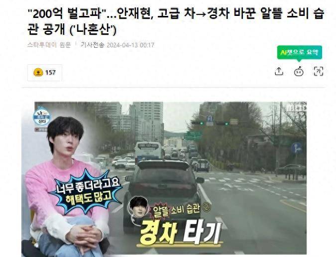 另一方面,韩国热门综艺节目《我独自生活》,是一档纪录片式的综艺节目,通过观察独居名人的日常生活,反映了韩国单身明星们的生活状况。对于,韩国知名男星,演员安宰贤透露,我想赚200亿韩元,过上令人羡慕的生活,大家怎么看呢?