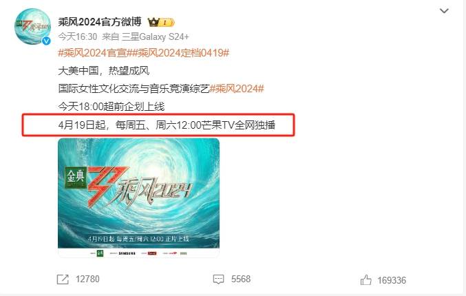 通过官微的消息可知,《浪姐5》并没有和前几季一样,选择在工作日更新正片,而是改成了周六和周日的档期,选在大多数人放假的时间上线正片,对于播出效果和话题的发酵显然更加有利。而节目组最终定档4月19日首播,据说会跟《奔跑吧》撞上。