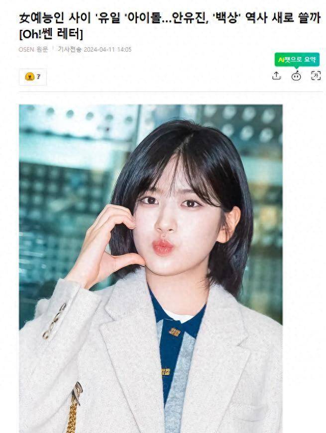 安宥真能否在颁奖典礼上捧起奖杯,在历史上留下浓墨重彩的一笔呢?即使没能获奖,但光是被提名为艺人中的现役爱豆,就足以让我们了解IVE安宥珍在娱乐圈的表现,更加期待她的未来。对于,韩国百想大赏,提名综艺女艺人中唯一女爱豆,她能否改写历史?大家怎么看呢?