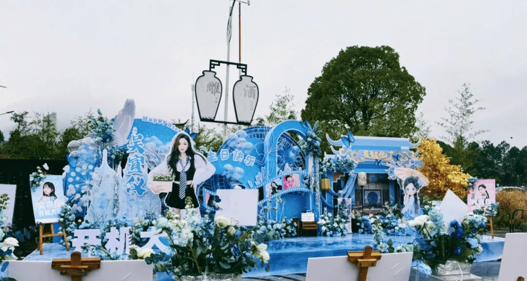 《五福临门》开机时,粉丝还给吴宣仪精心准备了开机 应援花墙。