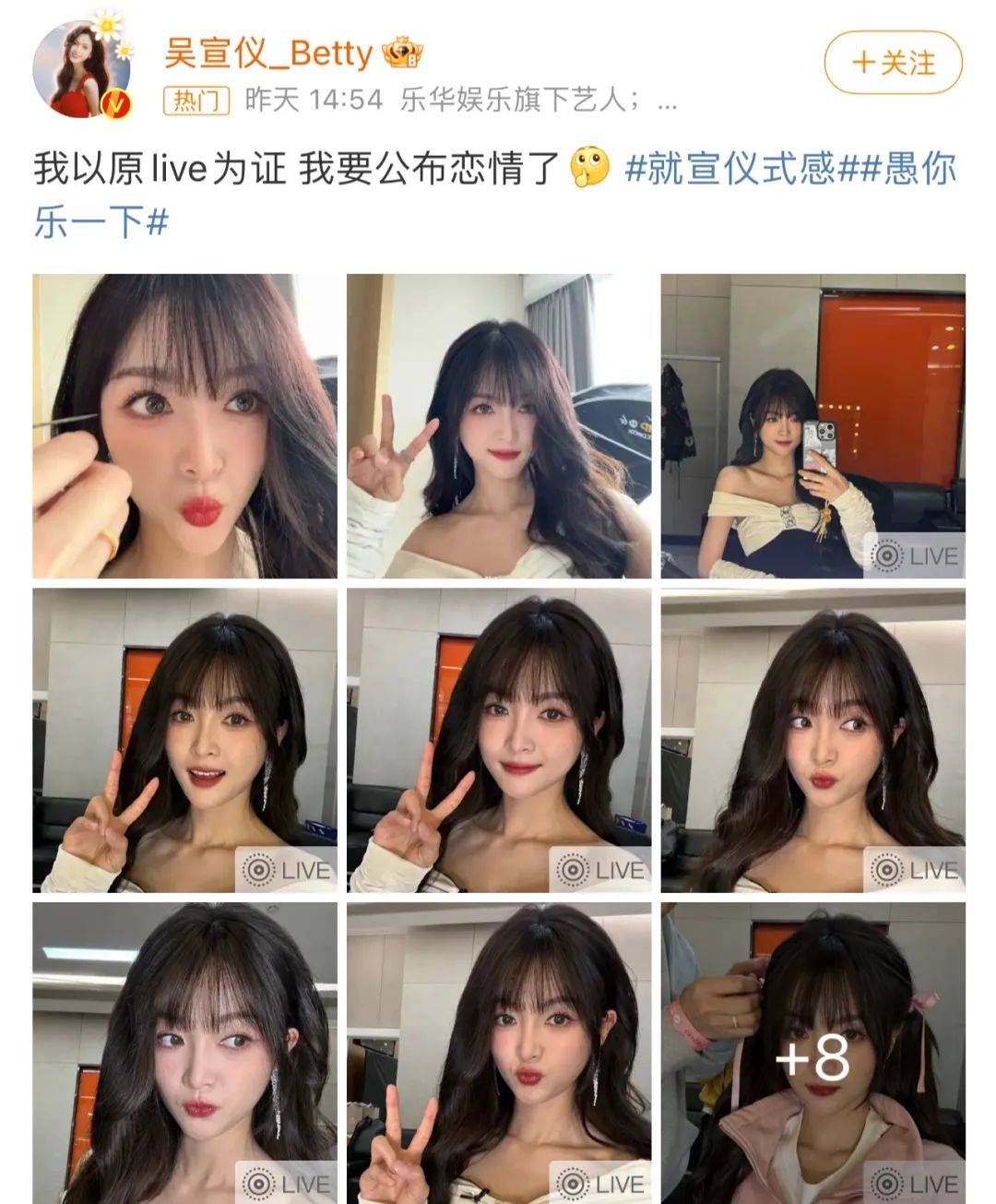 事情是这样的,上周不是愚人节吗?吴宣仪多图官宣自己即将公布恋情。