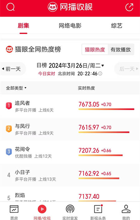 3月26日晚间,猫眼专业版的数据显示,电视剧《与凤行》丢掉了网络热度第一的位置,让位给了谍战剧《追风者》。值得注意的是,这部比《与凤行》晚开播3天的《追风者》,无论在收视率上,还是在网络热度排名上,均已经超越《与凤行》。