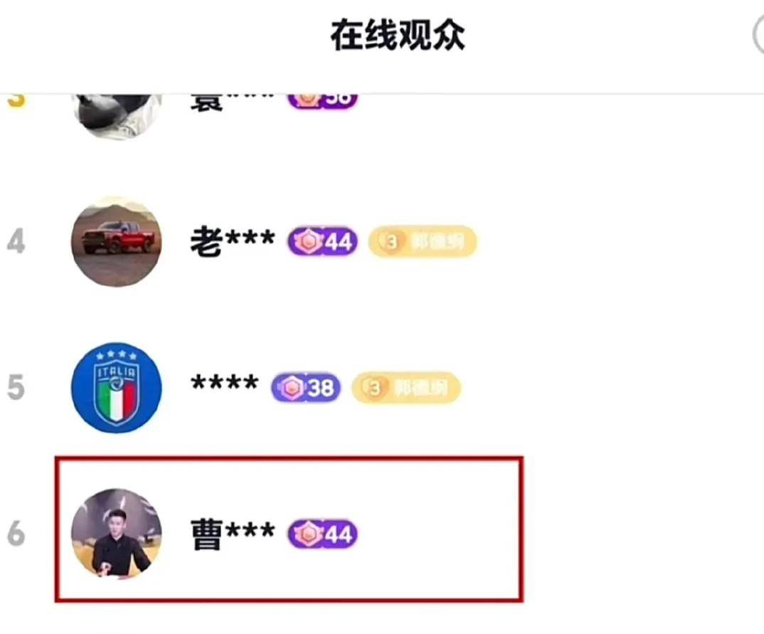 从直播间当天的数据中可以看到,曹云金狂刷礼物,为郭德纲献上“大火箭”,并且很快地成为了郭德纲直播间的“榜六大哥”。