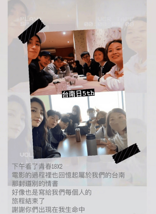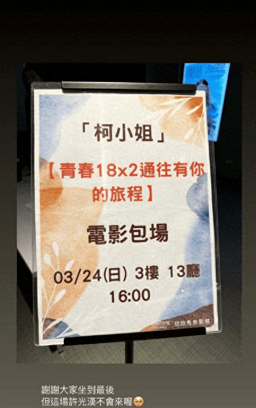 柯佳嬿24日晚上在社交平台晒出了包场观影许光汉新电影的照片,并转发了“凤南小分队”早期和近期对比照。她分享道:“回忆起属于我们的台南,那封道别的情书,好像也是写给我们每个人的,谢谢你们出现在我生命中。”这番话让粉丝们感到十分温暖。
